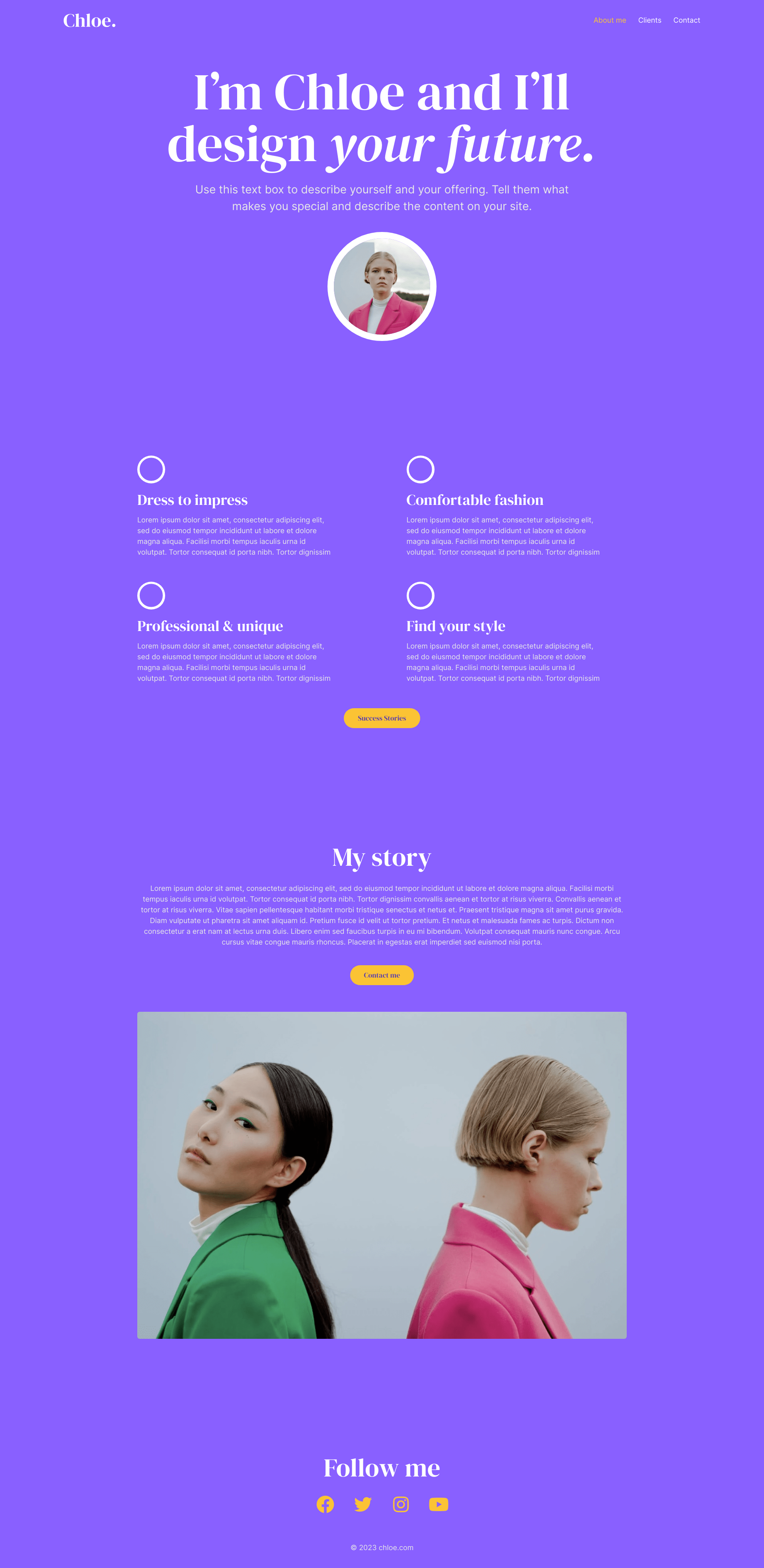 Dress to impress with this stunning website design kit. It’s minimal design will let your style do the talking through the images you choose. The site includes a homepage, clients page, and contact form that will generate leads.