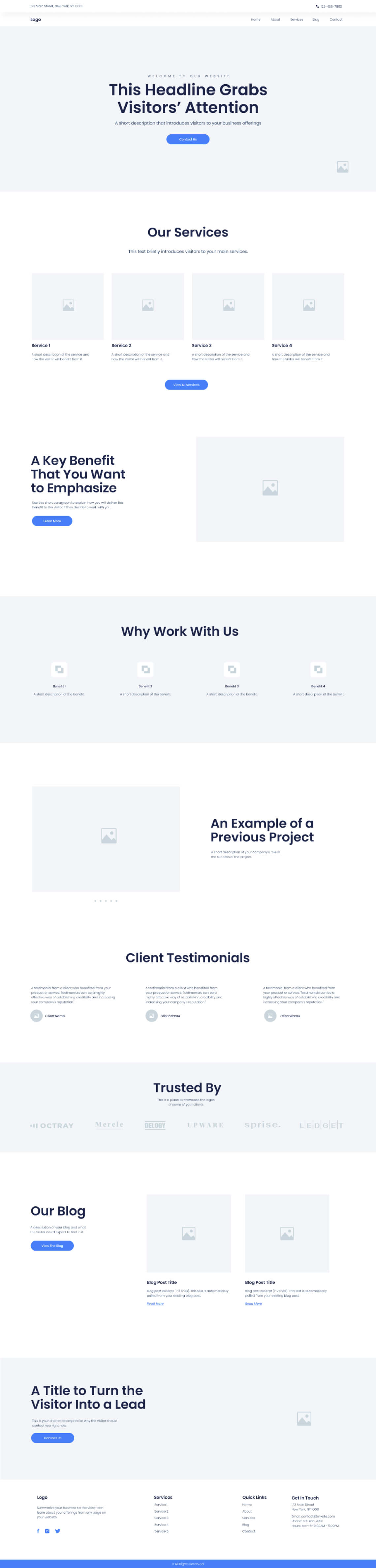 If you’re looking for a local services website wireframe, this is the kit for you. The perfect starting point for any web creator, from beginner to advanced. Simply add your own creative designs using the basic structure as a guide.