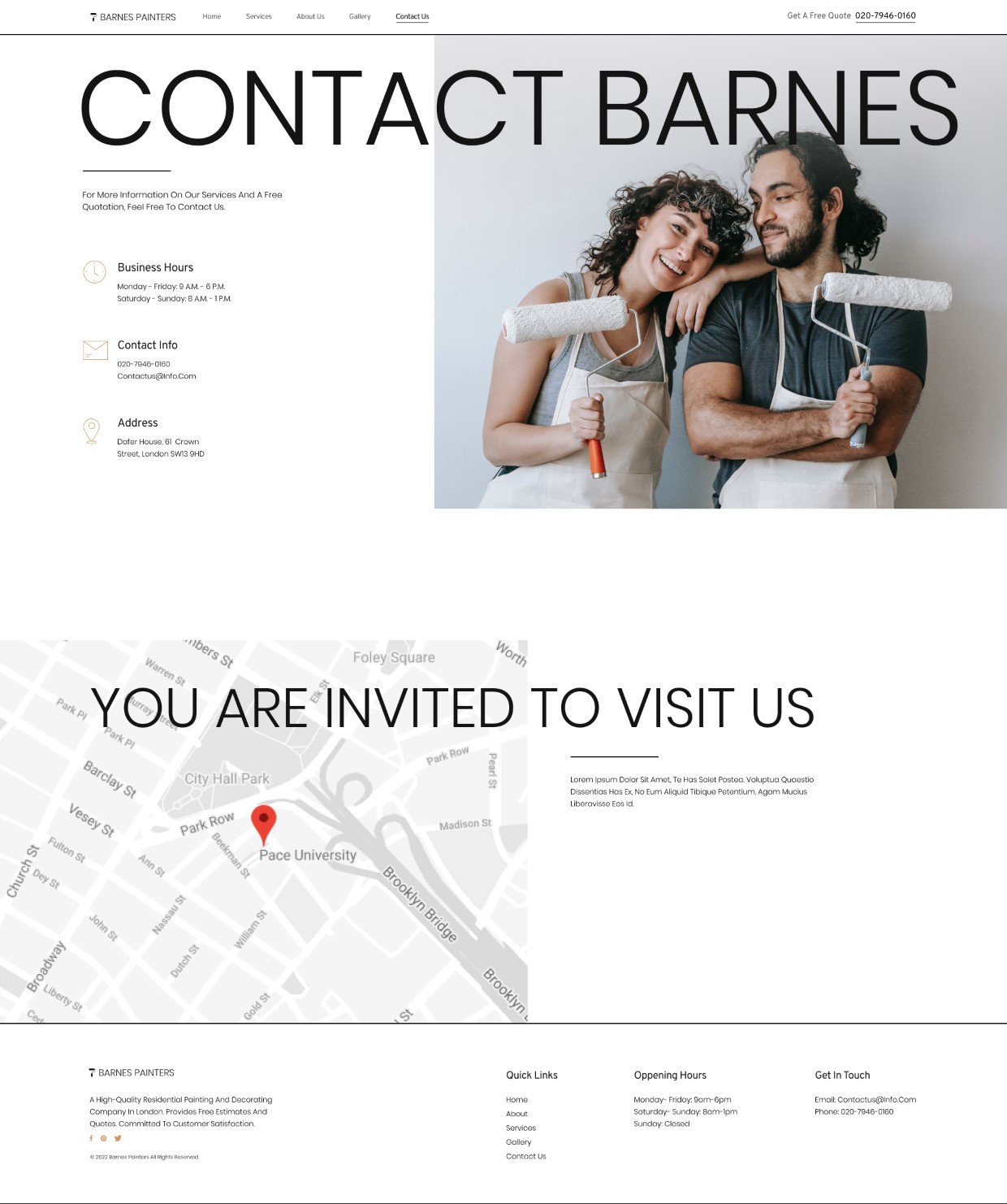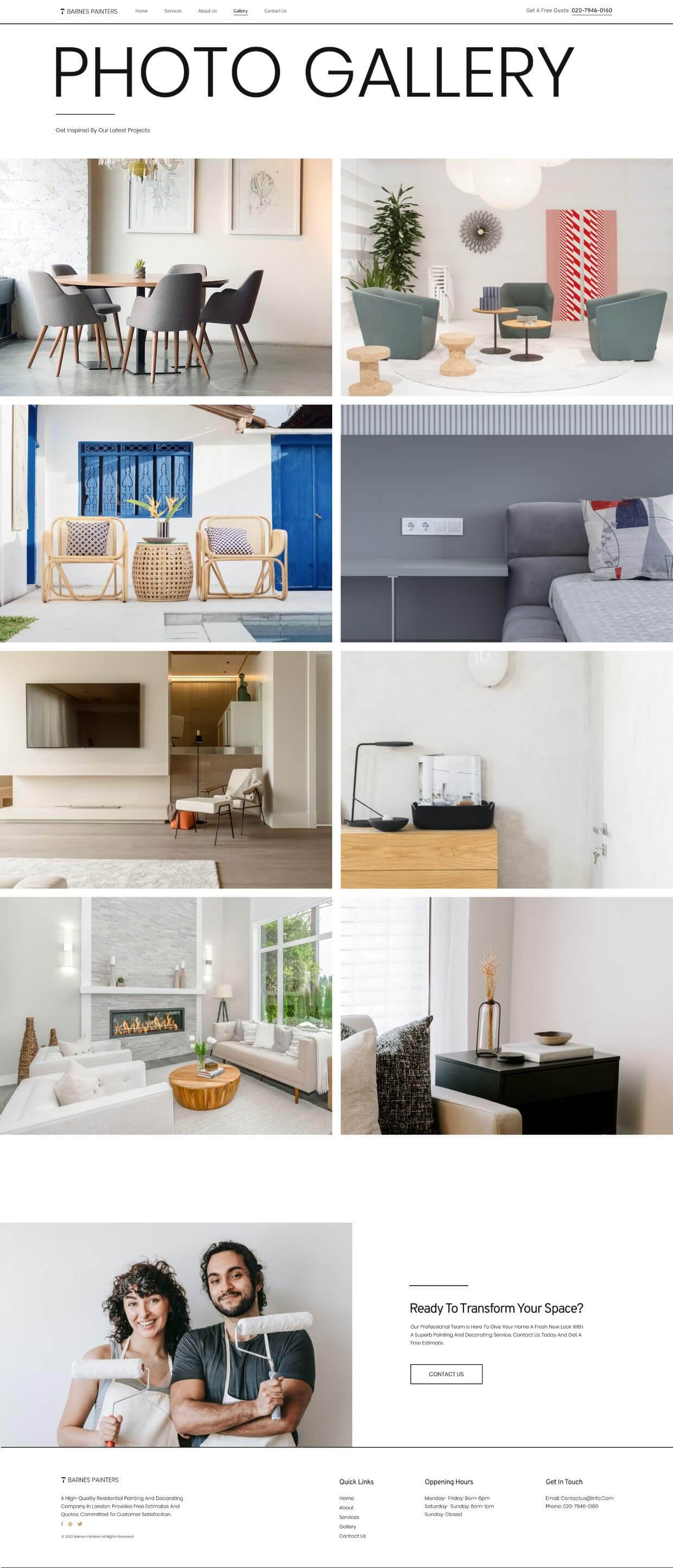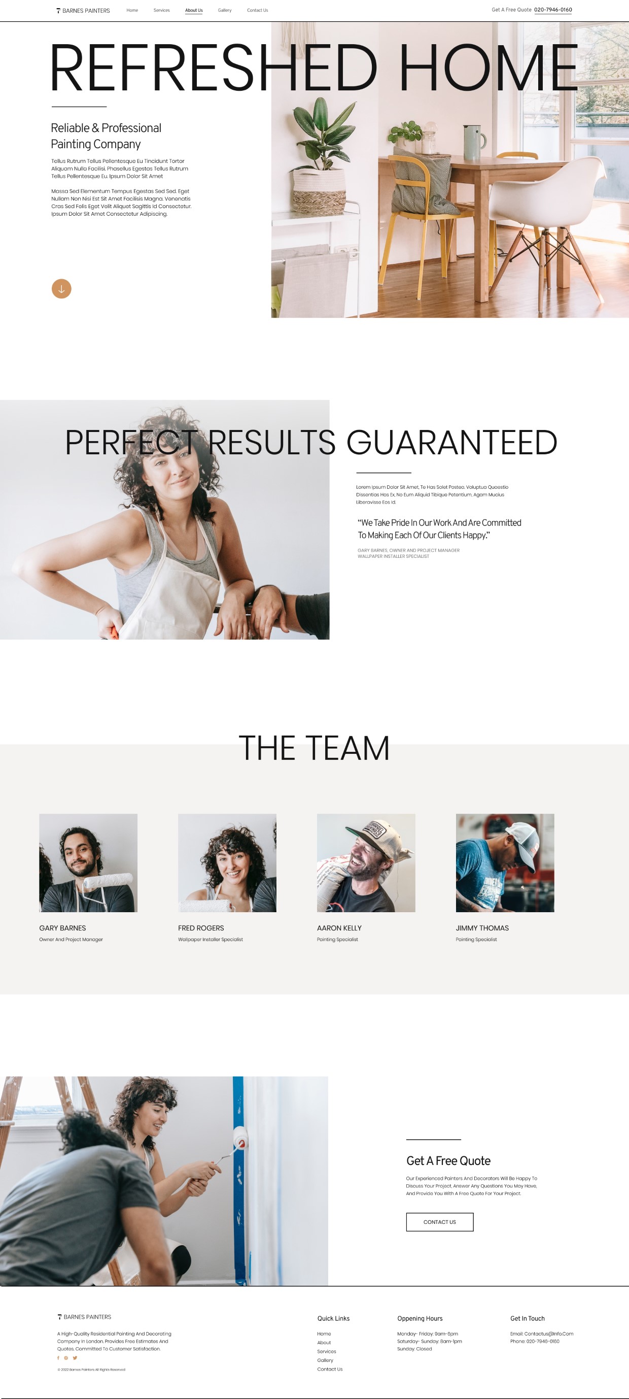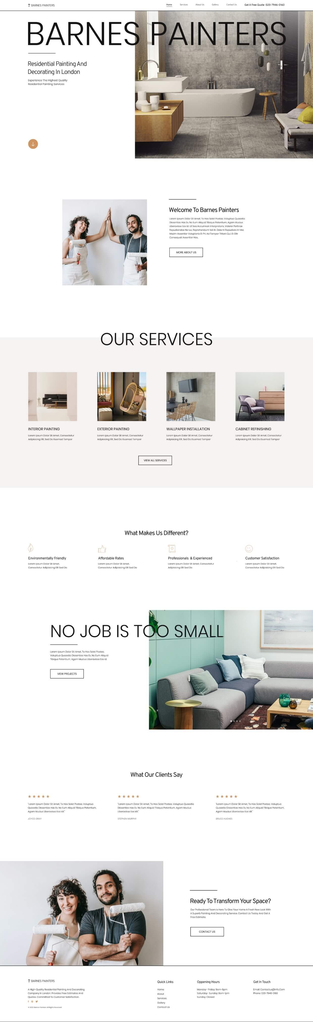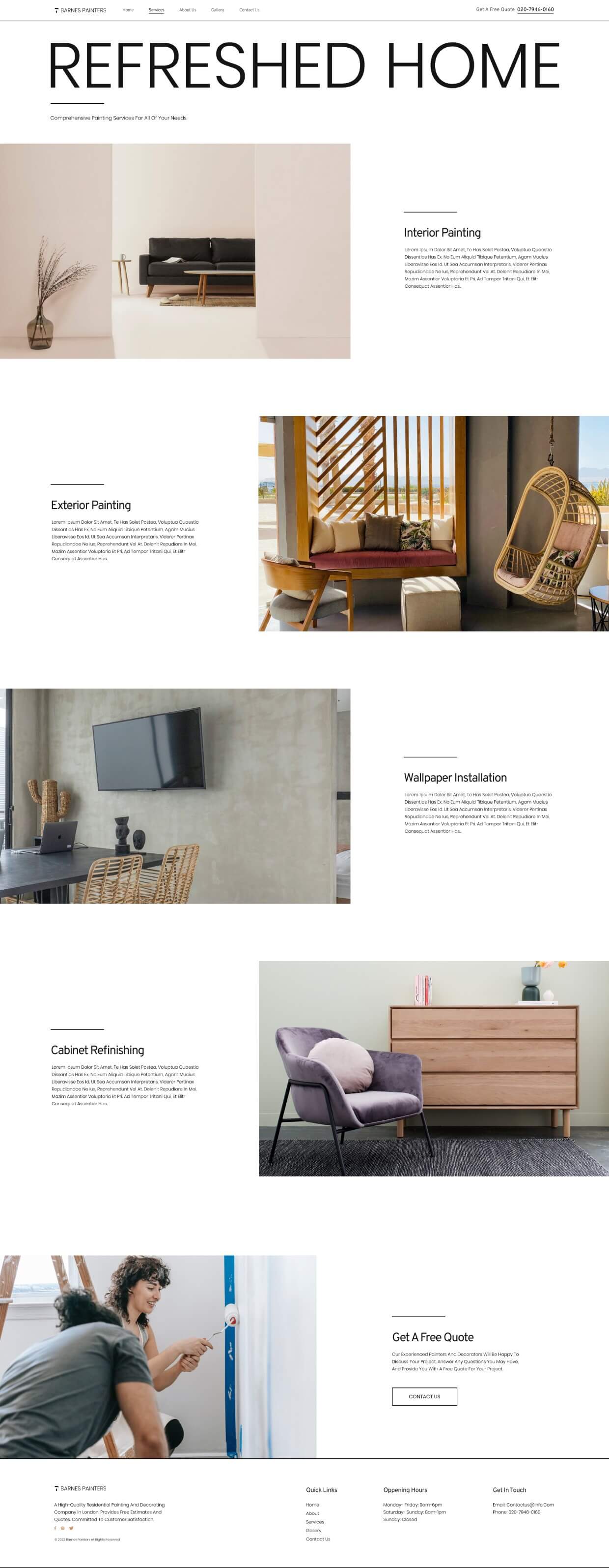 A white palette displays your professional painting company’s services in this clean website kit. Big, bold texts, and colorful images decorate every page. Cover every wall from header to footer by choosing this smooth, polished painting company website kit.