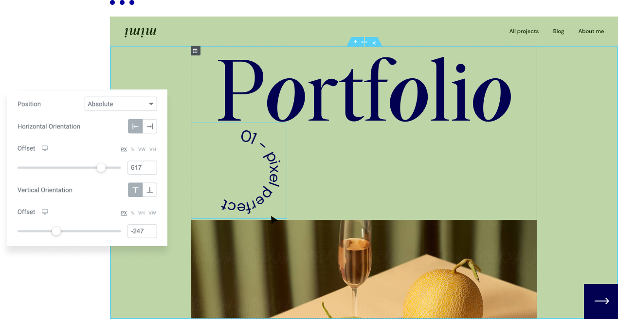 Get full flexibility over your layouts and go off-grid with Fixed or Absolute Position. Drag and drop each element to its desired spot.