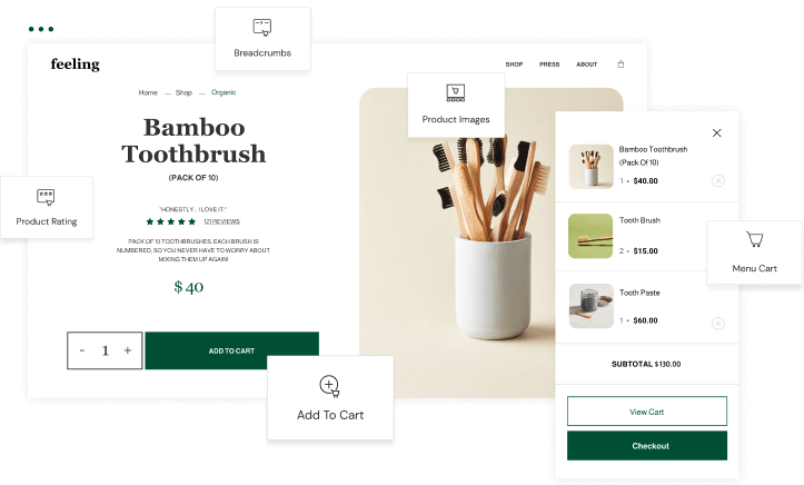 Build all the essential components of your store, zero coding required, and create an eCommerce experience your customers will love.