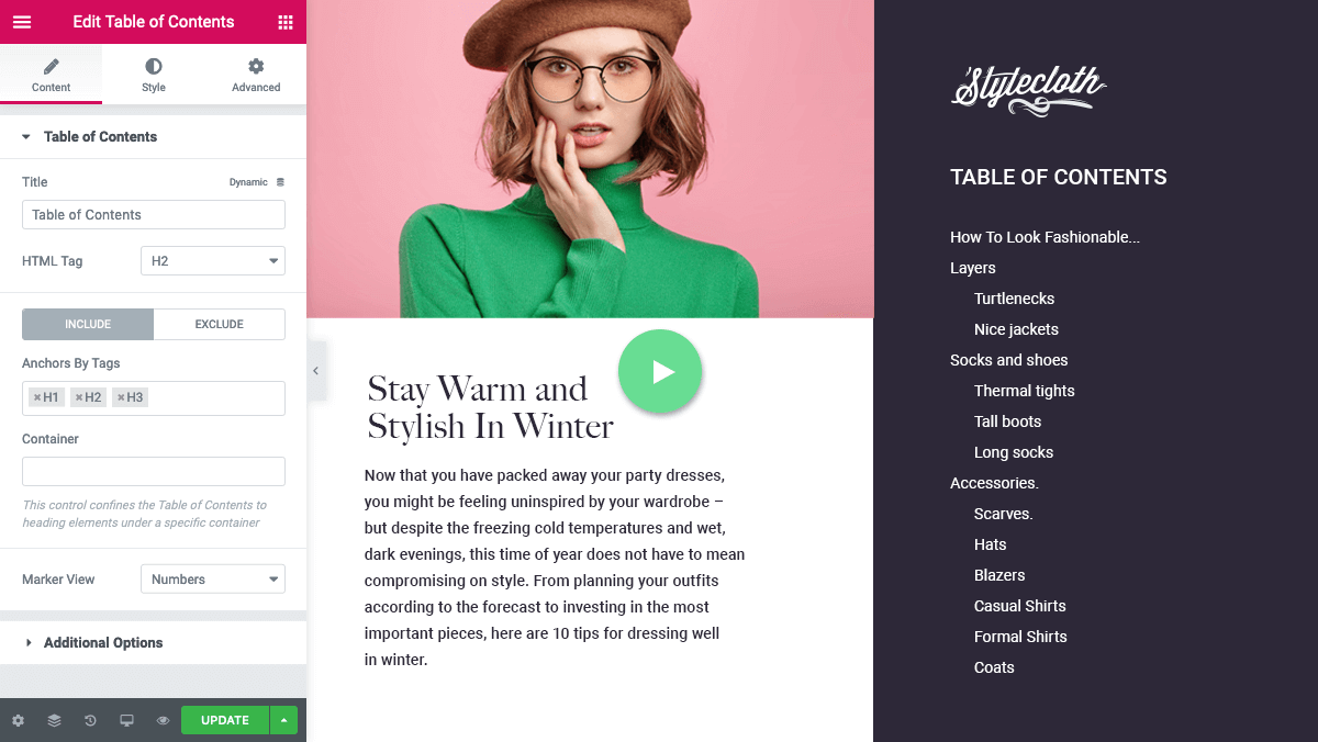 Easily apply your website’s design style to your Table of Contents widget – or customize it by editing the HTML code or CSS