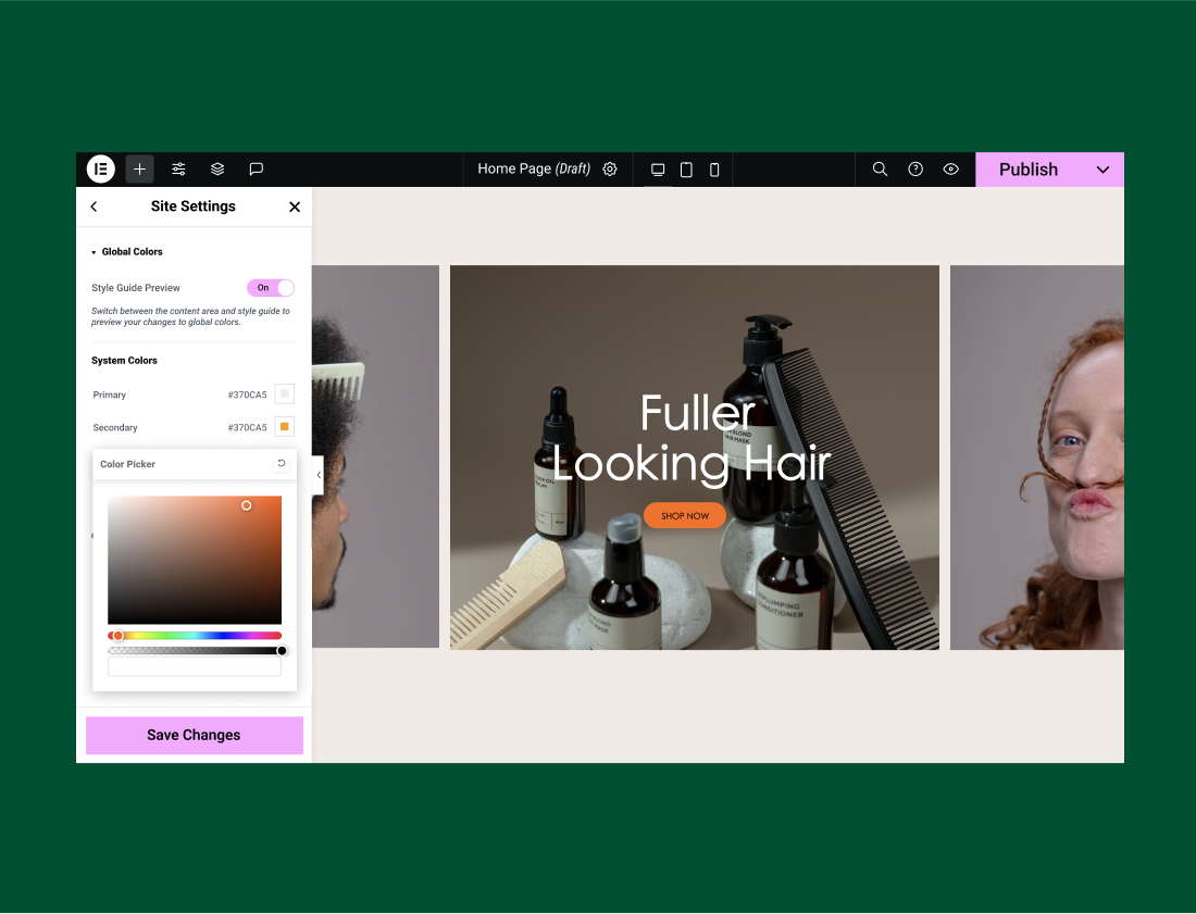 Define your website’s design system with global colors. Save them once and apply them to any element on your website.