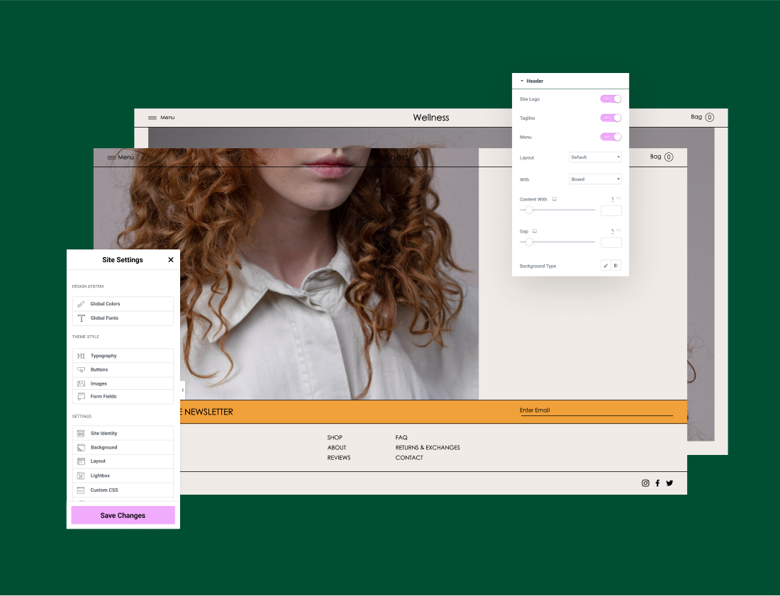 Control all global elements of your website, including website identity, lightbox settings, layout, and theme styles, from one convenient place.