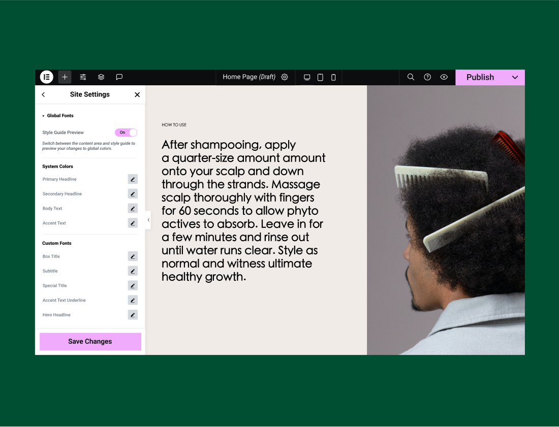 With Elementor’s Site Settings panel, you’ll find many site-wide configuration tools.